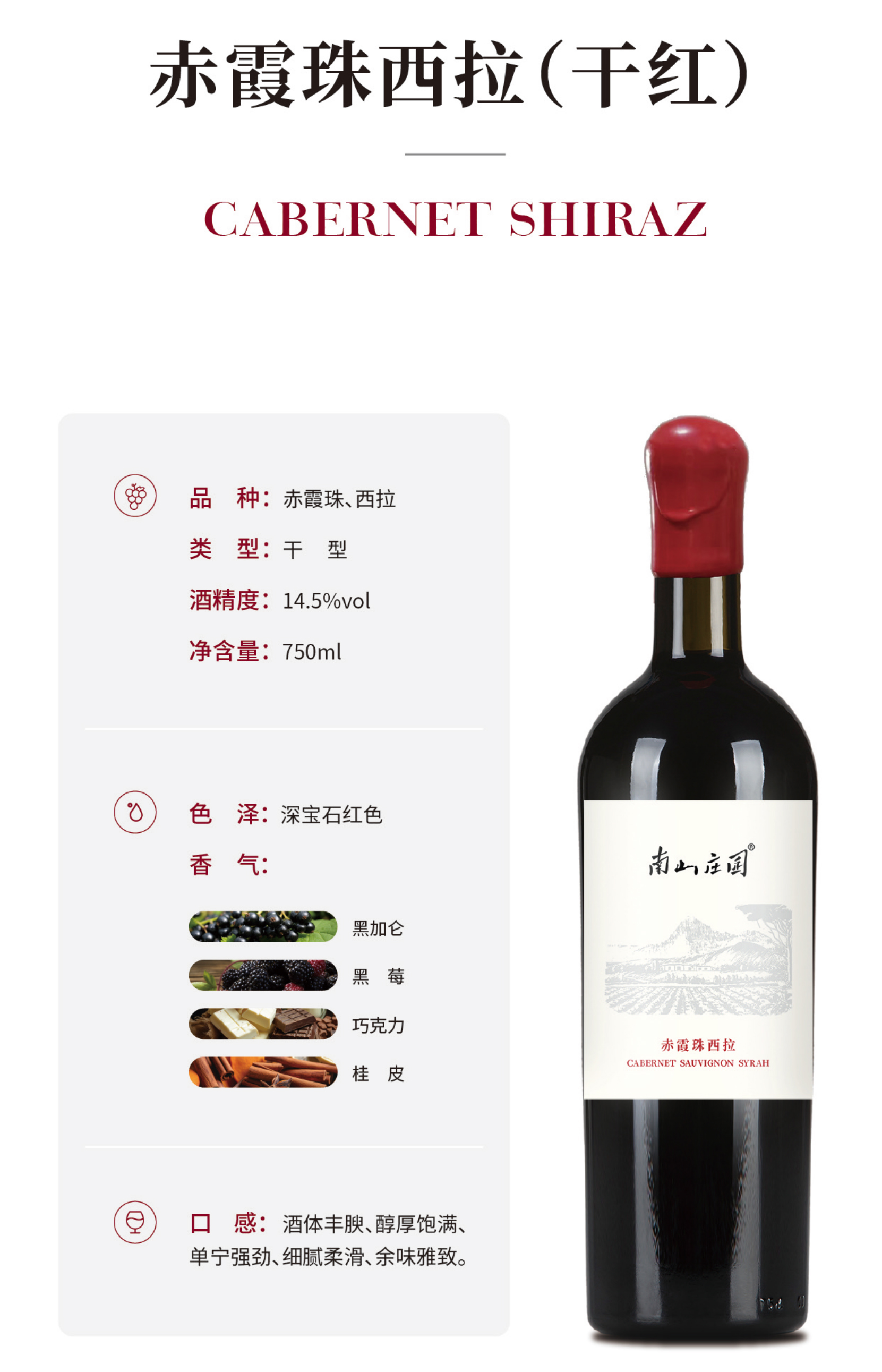 南山庄园 庄园赤霞珠西拉干红葡萄酒